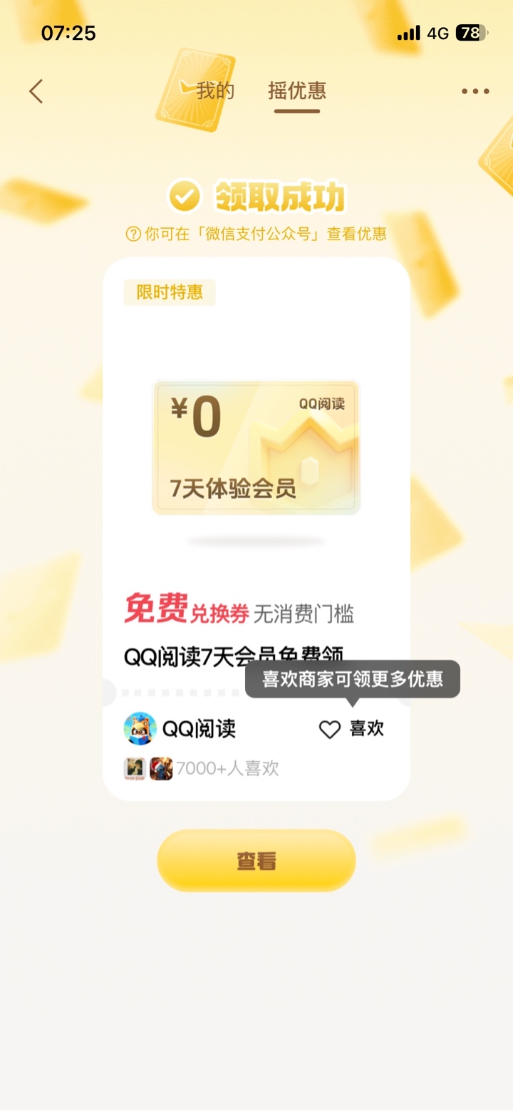 666,早上买早饭微信支付得了个这个。不过没有七天只有一天不要白不要还行吧。