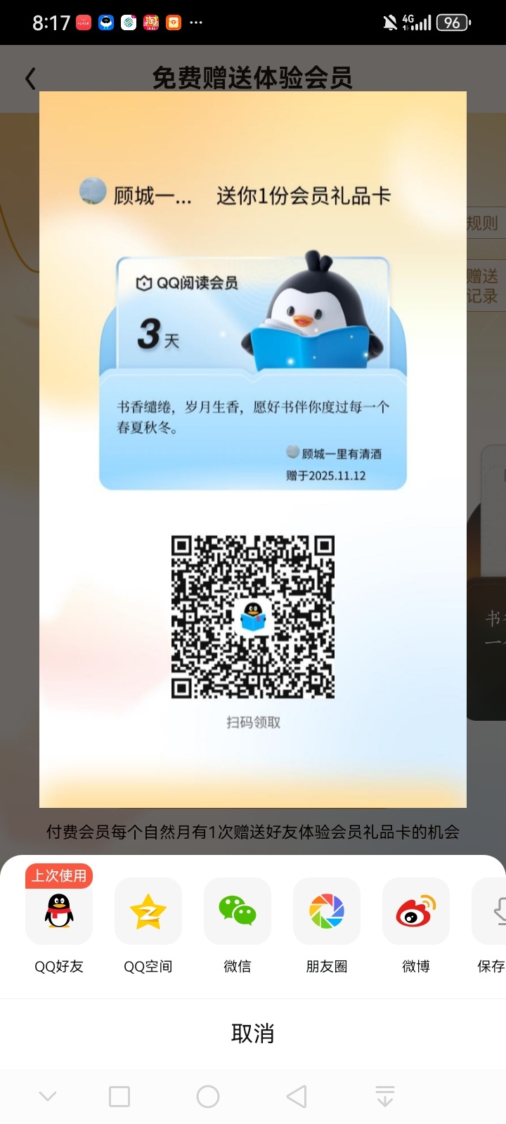 11月份三天免费会员,需要的来拿吧。 领取后说一声,以免后面的书友跑空。
