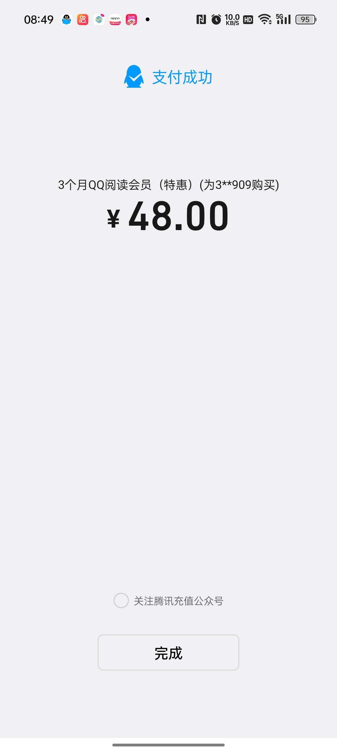 第一次用q币开通一个月,显示要消费5元,以为q币开通的不算。第二次用qq钱包支付后再看还是显示要消费5元。什么问题呢?下面不是写着在app里面的消费都算。白花钱了 开了外挂还是没抢到 最后的是抽奖的不是自己选奖品的。后面的加油,大奖还在等你们。总结还是得靠运气啊