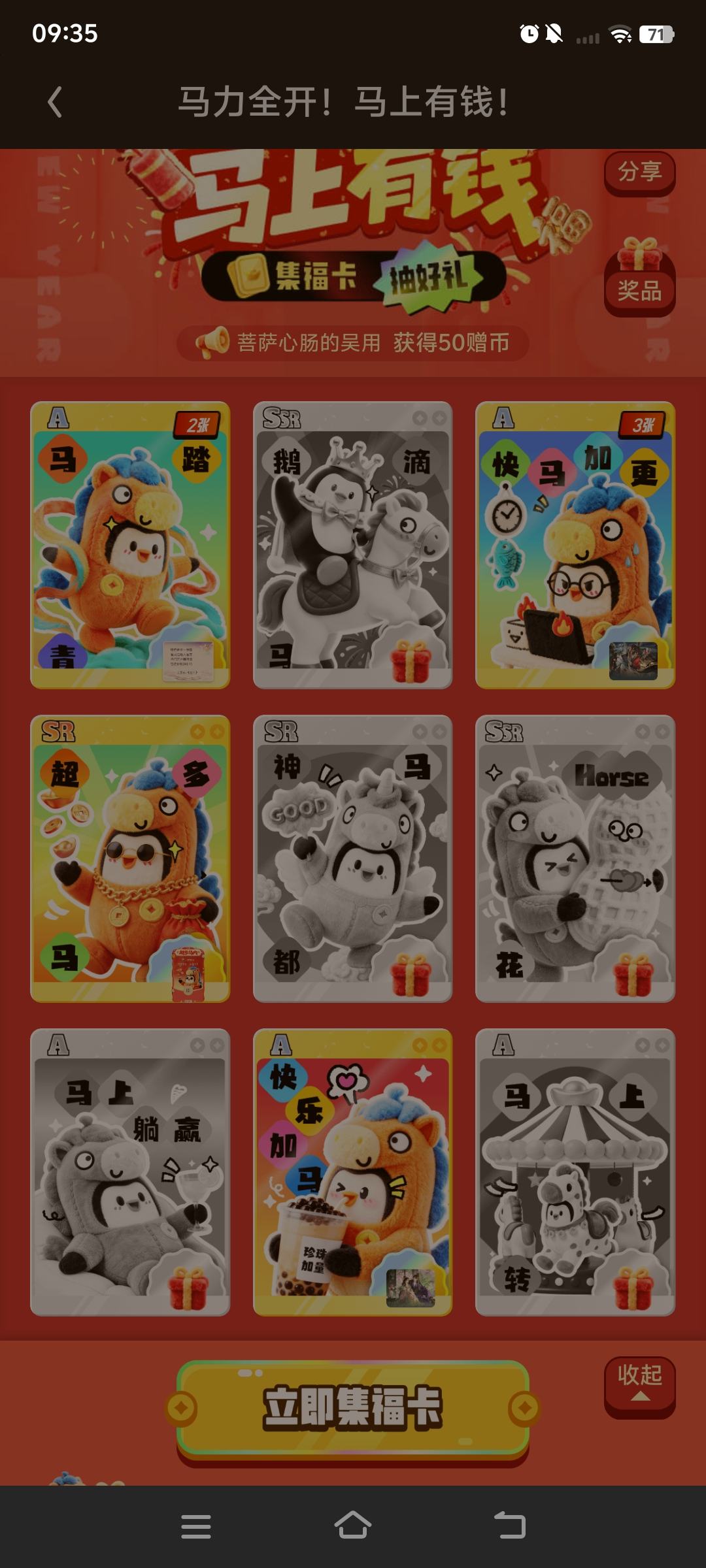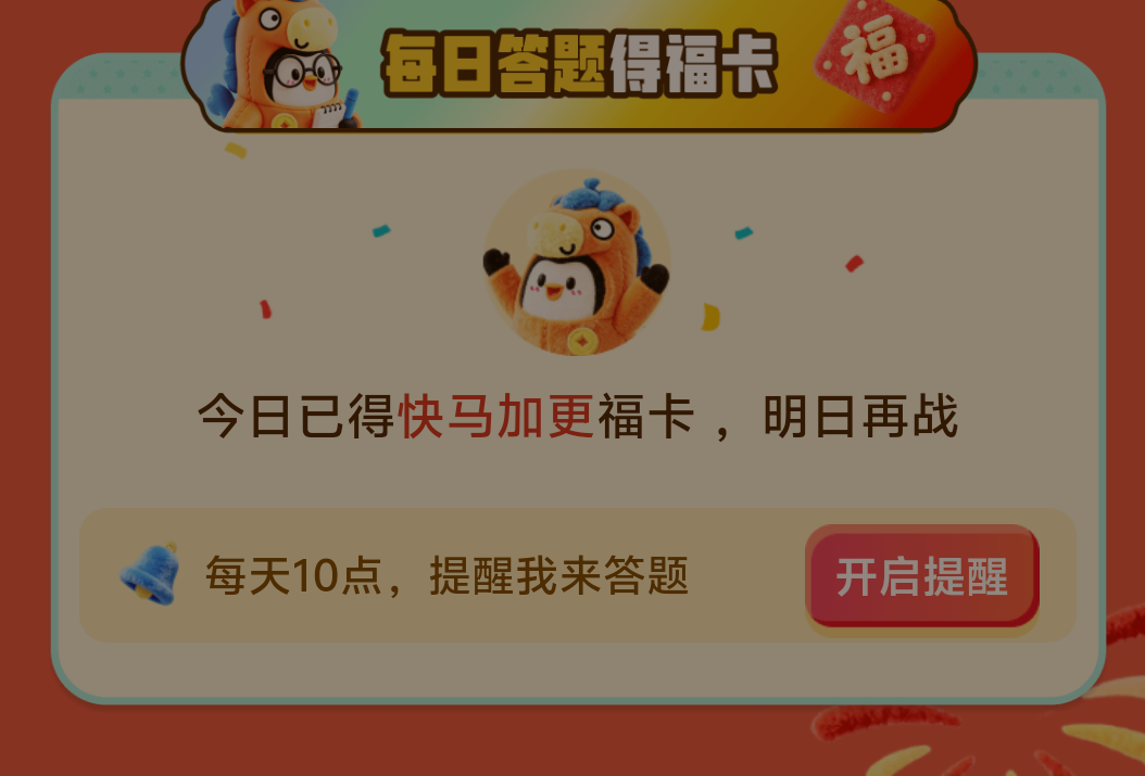 抽卡抽七次,重复三次,越往后抽卡越难 每日答题抽卡,看广告一次试错机会。 刚好第三次答错,看广告