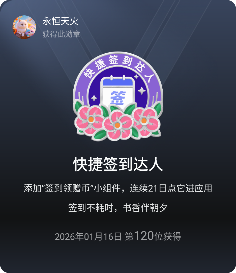 不是这怎么回事啊,怎么有一个前两天断签了,这两个勋章我都是一块签到的呀