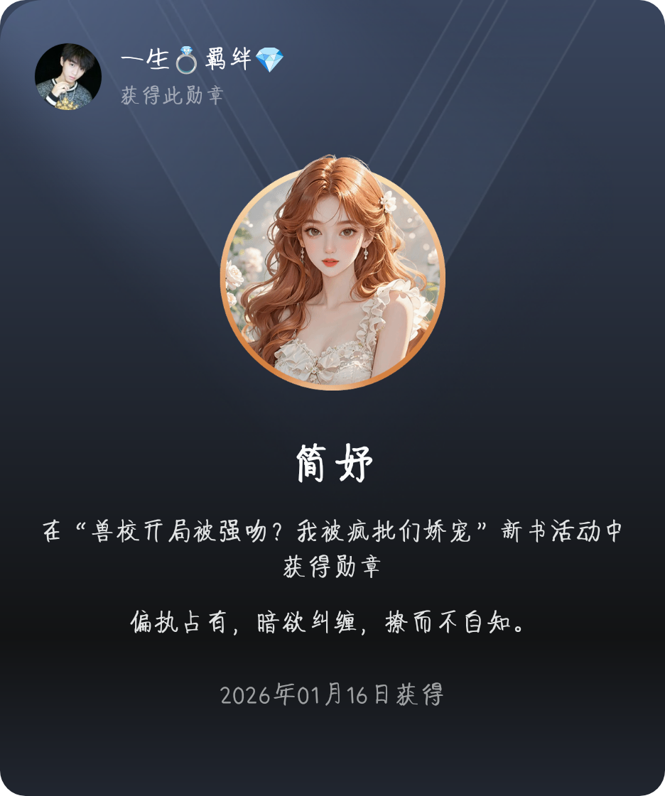 新勋章get!🎉现在简直比中奖还让人兴奋哈哈~ 这一刻超有成就感!!好奇大家都搞到了多少勋章,最想要哪个勋章? 很少见的兽校题材,还是很喜欢毛茸茸,啊啊啊啊啊,爱美人,亲亲女主爱了,男主们也帅帅的(我好想独占他们啊,可惜我只能隔着屏幕单相思) 这个系统也挺有趣的,还偷偷去和主系统打了一架,不是那种刻板的统,实乃真性情。 还是那句话, “七是个充满魔力的数字!″