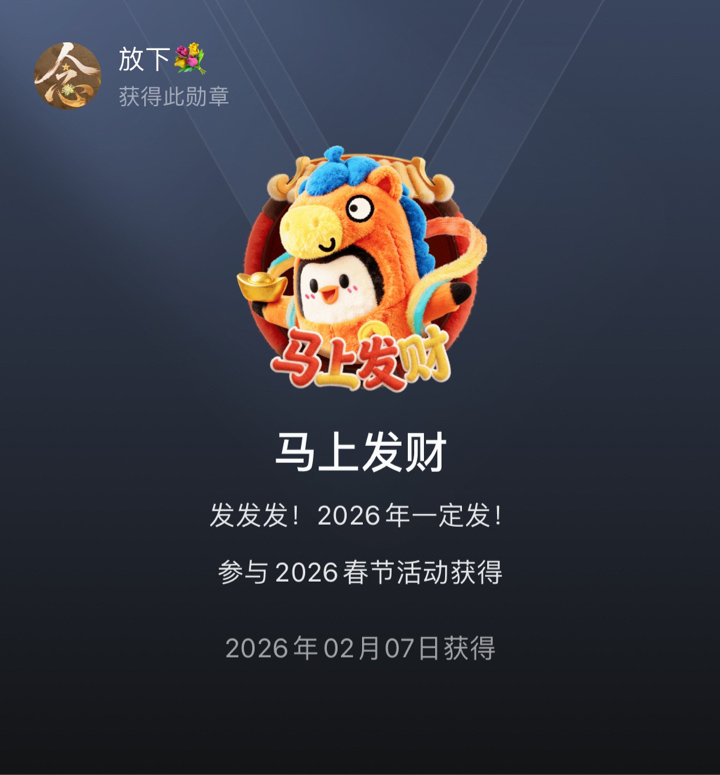 新勋章get!🎉🎉🎉 发发发!马上发财! ㊗️所有书友们2026年一定发! 顺风顺水顺财神💰💰💰