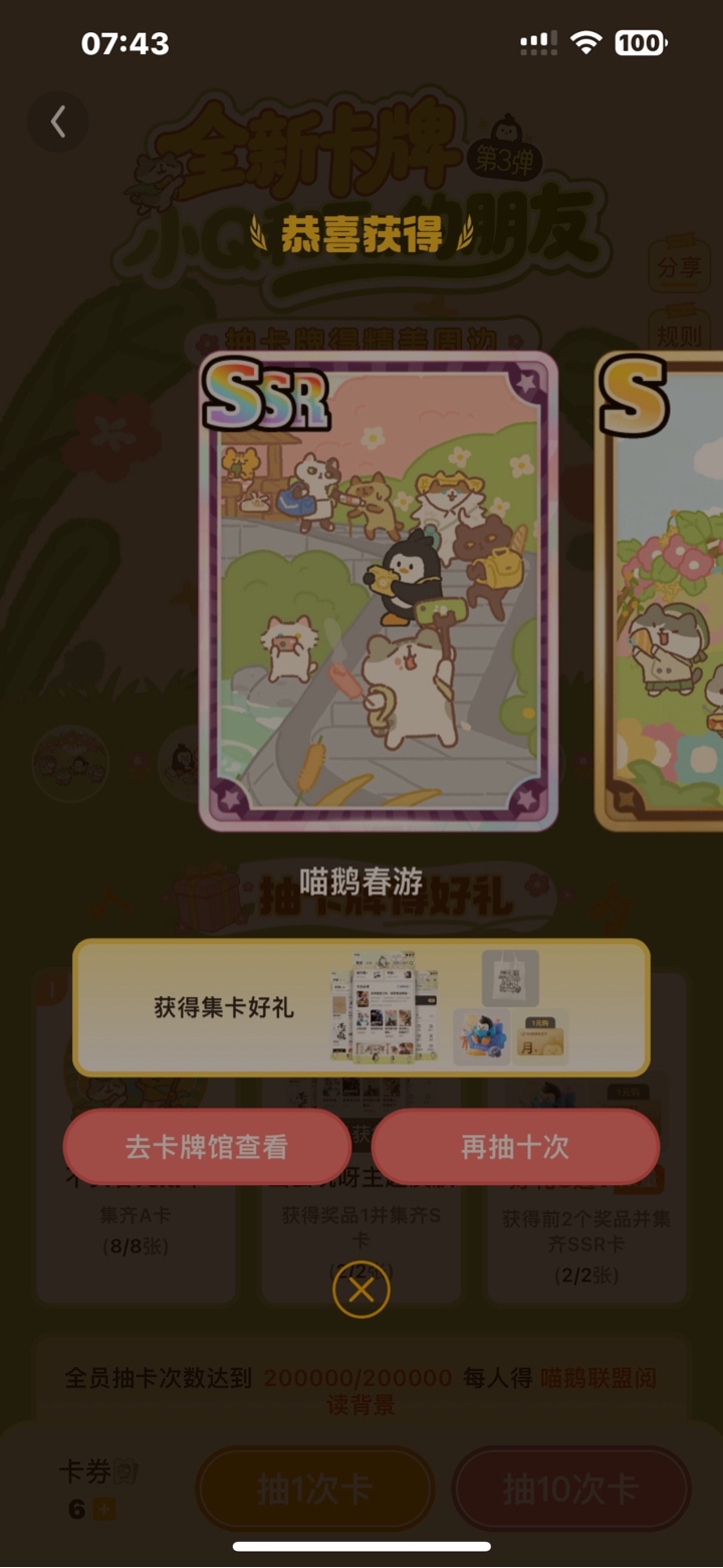 冲了一次会员就集齐了,果然还是的氪金才行啊!!!! 这玩意就跟游戏一样、一直都出一些氪金活动