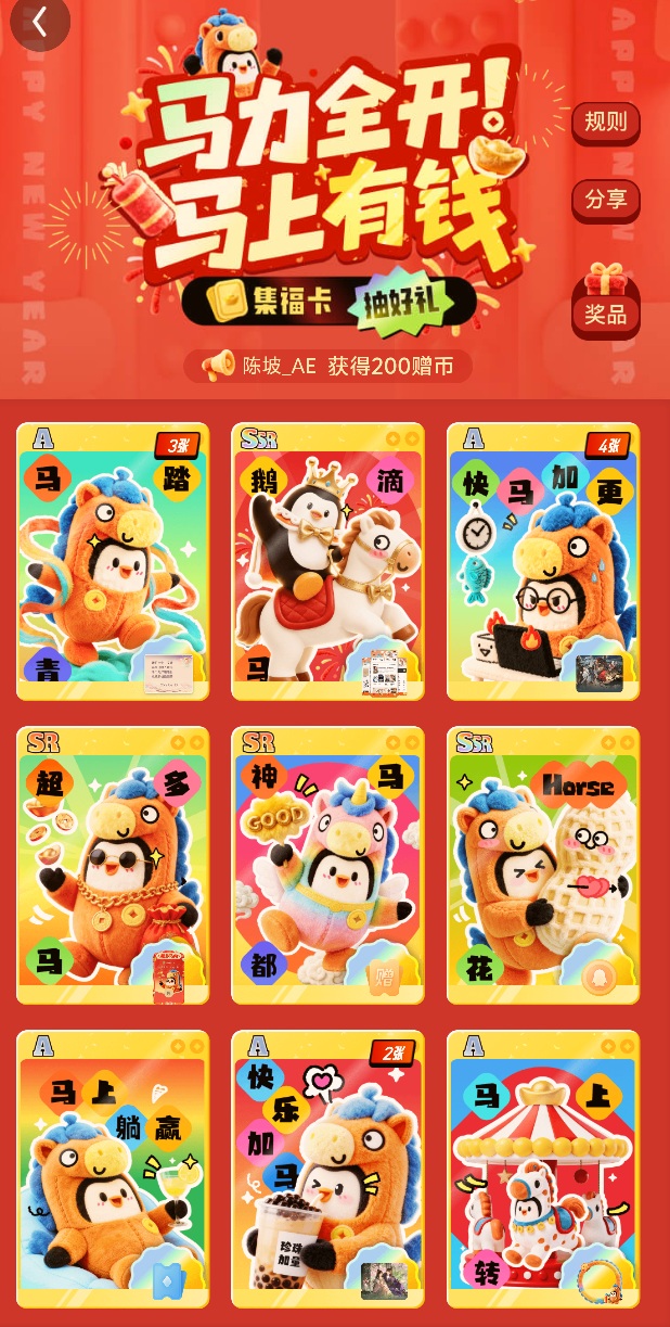 这个集卡,你们有人凑齐九张没?我到四张就一直重复了,五张的奖励都拿不到