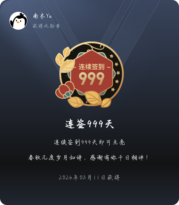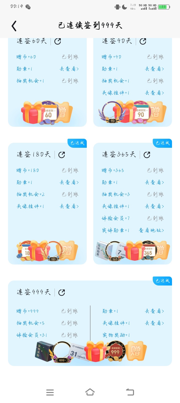 999天连续签到 漫长的999天终于结束了,真的太不容易了,后续等待实物奖励