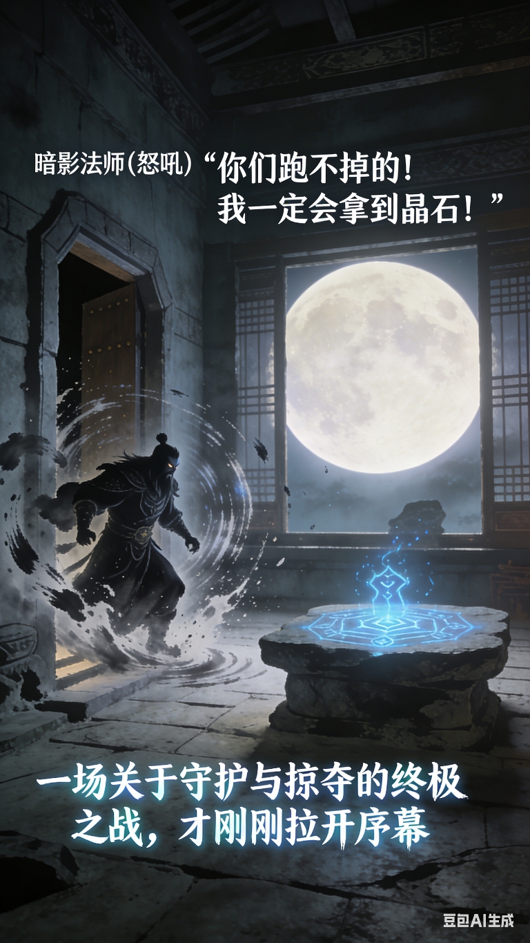 密室入口突然传来剧烈震动,暗影法师的咆哮声穿透墙壁;窗外圆月高悬,皎洁的月光洒在密室里,石台的符文闪烁着光芒 。