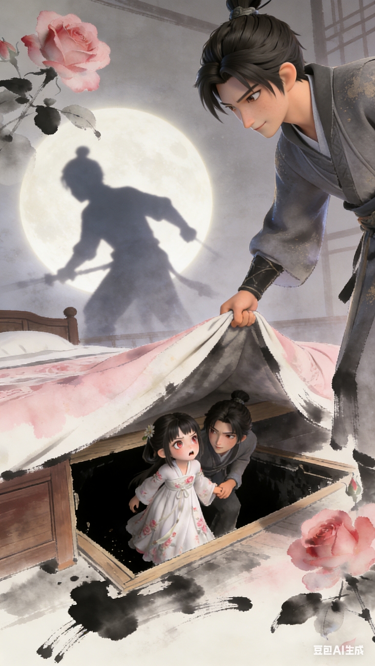 曹珏拉着蔷薇公主来到床底,掀开暗格,露出密道入口;两人对视一眼,弯腰钻进密道,身后的战斗声渐渐被隔绝 。