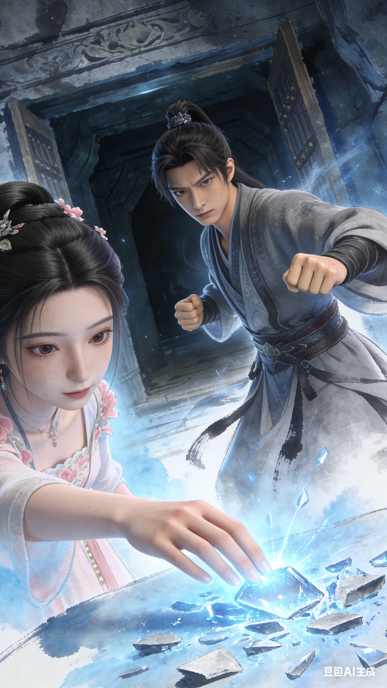 蔷薇公主走到石台边,伸出小手轻轻触碰碎片,蓝光瞬间爆发,将少女全身笼罩;曹珏站在一旁,握紧拳头,眼神警惕地看向密室入口