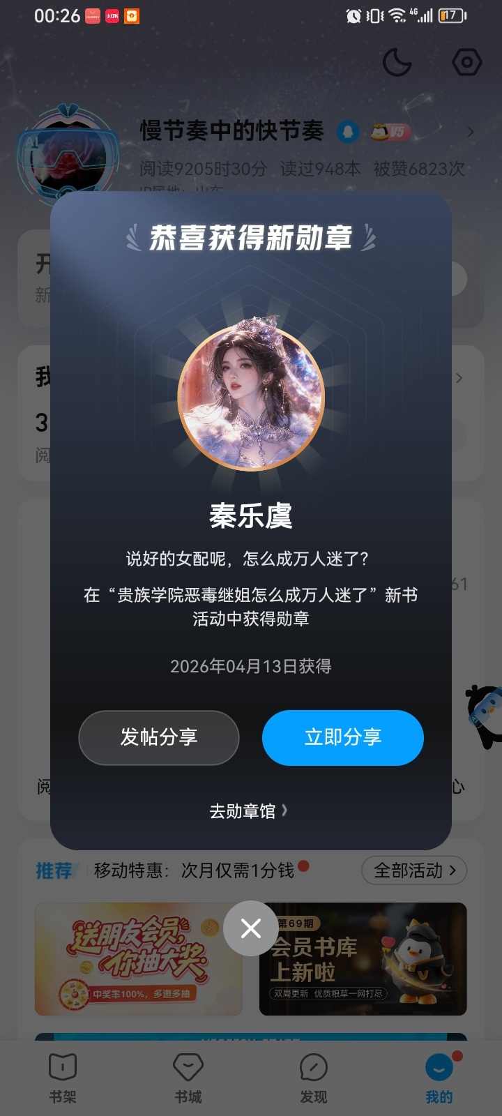 秦乐虞 说好的女配呢,怎么成万人迷了? 在“贵族学院恶毒继姐怎么成万人迷了”新书活动中获得勋章 2026年04月13日获得