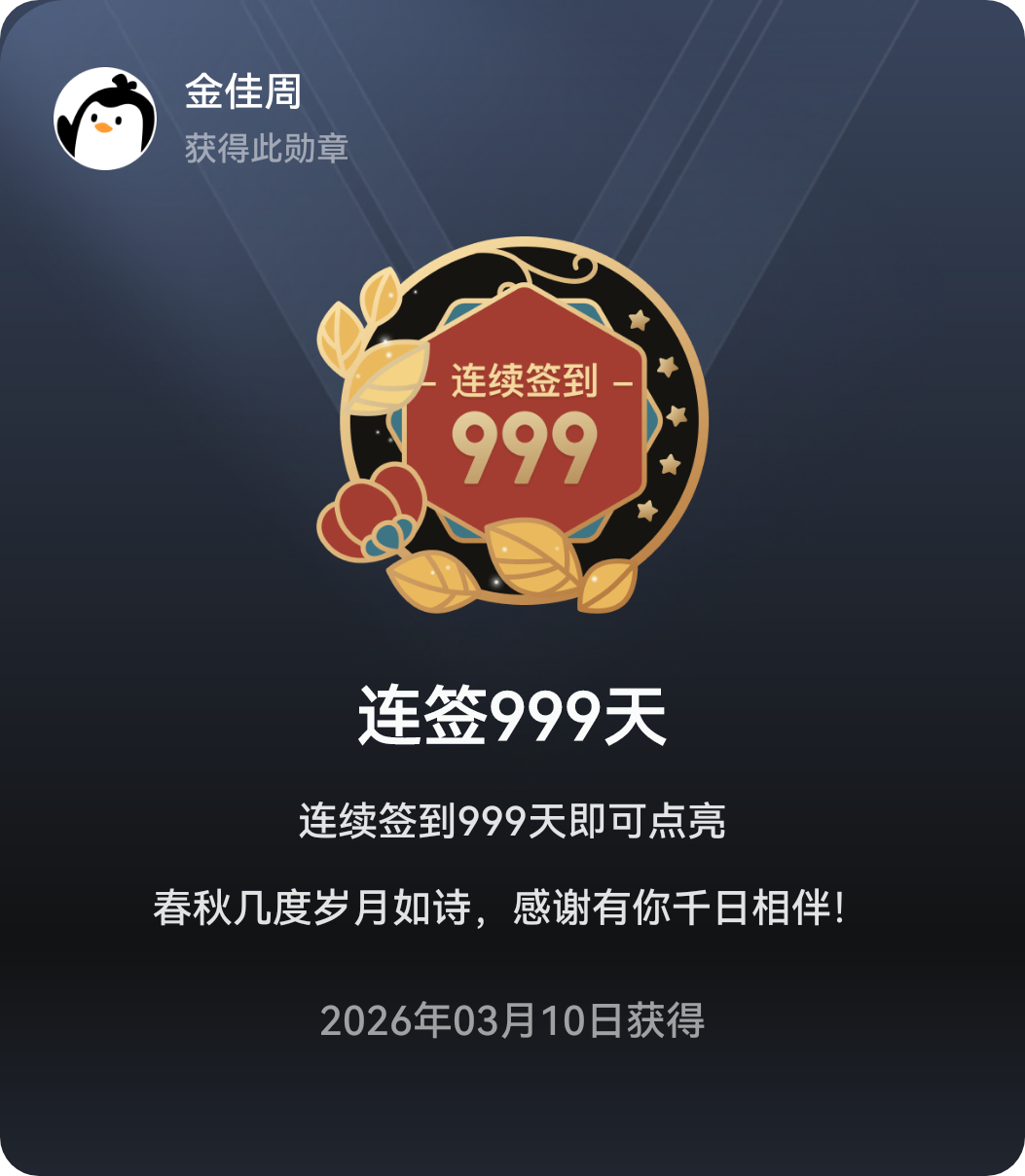 新勋章get!🎉现在简直比中奖还让人兴奋哈哈~ 这一刻超有成就感!!好奇大家都搞到了多少勋章,最想要哪个勋章? 不知不觉间签到999 天了