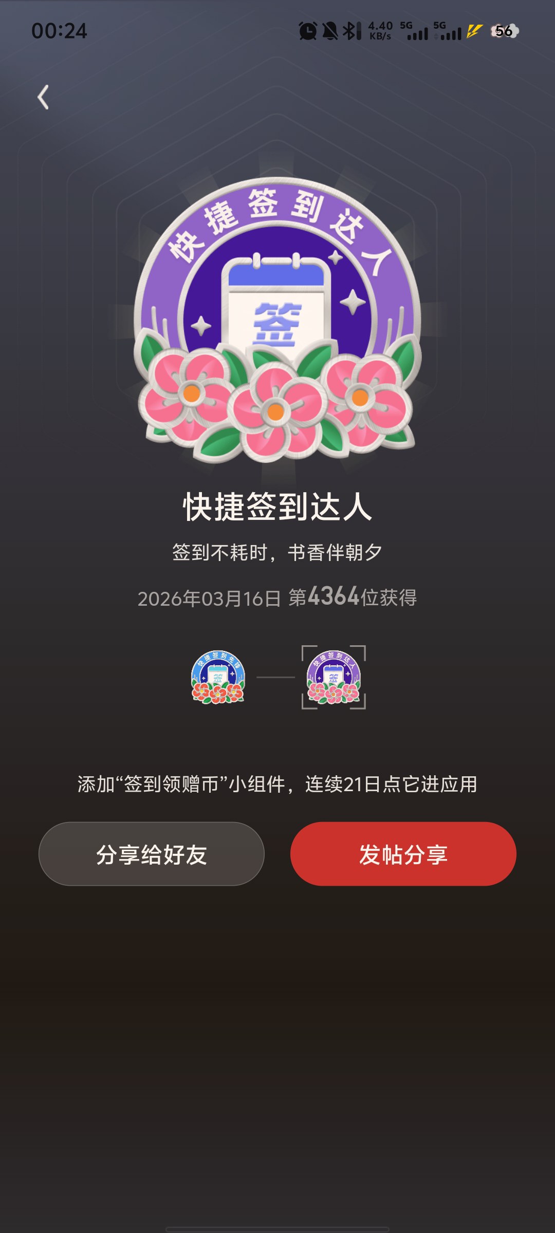 好好看的徽章,刚开始打卡的时候也没想到它是紫色的