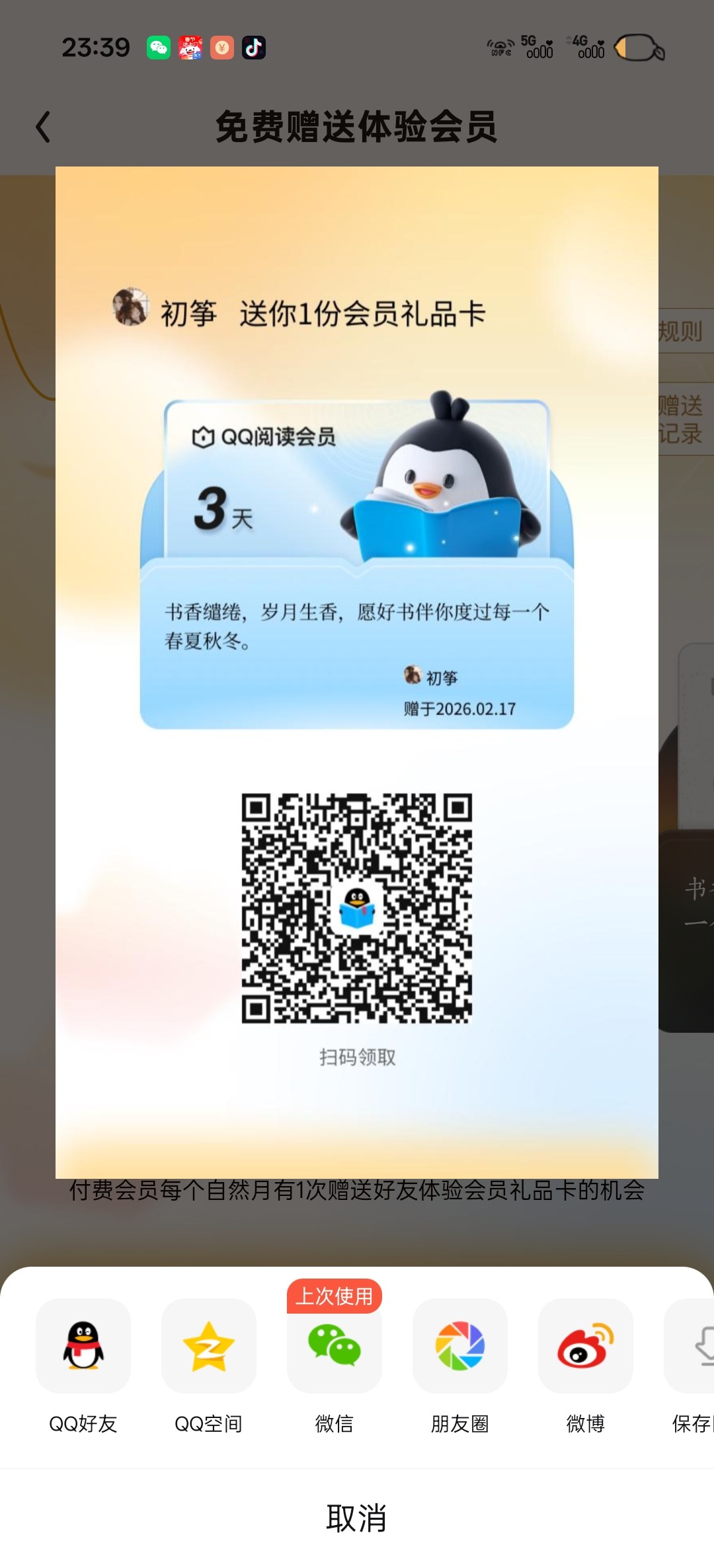 二月会员三天体验,拿了说一下就好了。