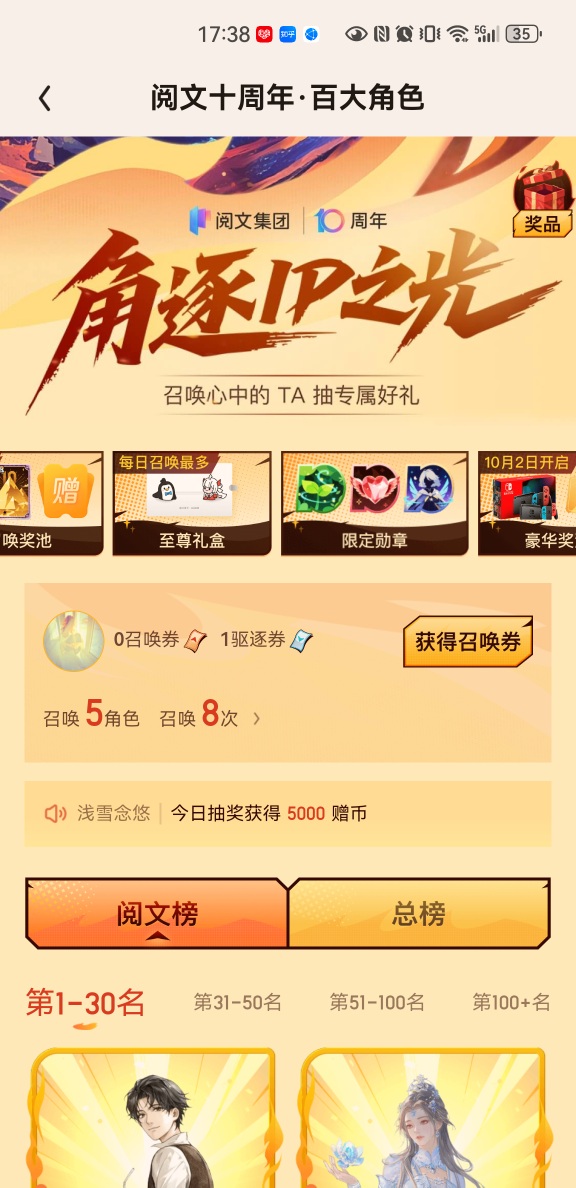 大家都一起来看书召唤喜欢的角色吧!每次都感觉召唤券不够用,这么来看付费会员还是有优势的。勋章有点多,争取能拿下吧