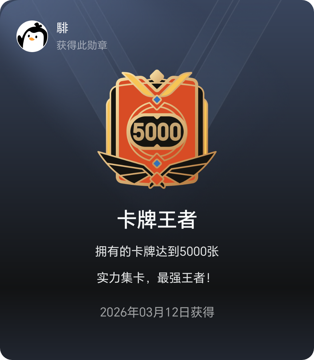 哈哈,五千张卡牌勋章成功获得