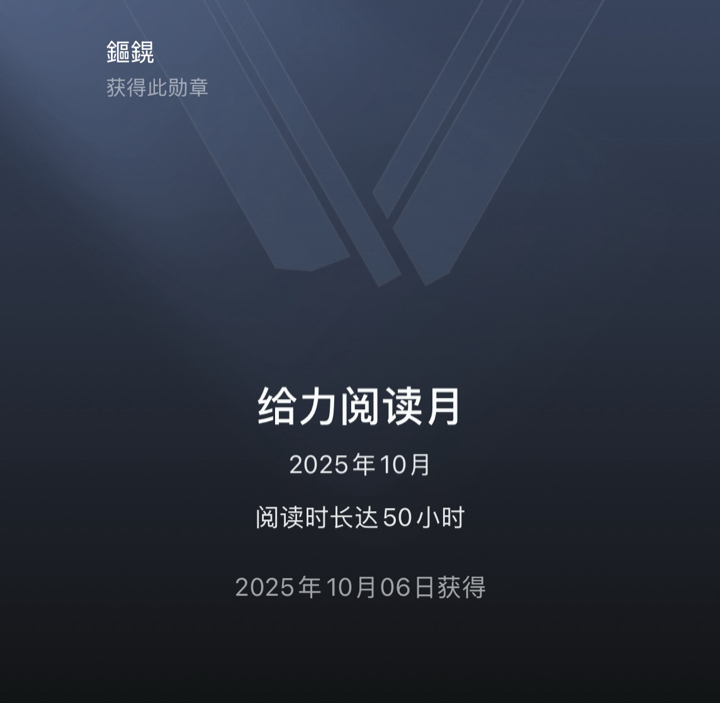新勋章get到啦,这几天都在看这本书,还每天每章节都打卡,所以今天上新马上领到,好开心🥳