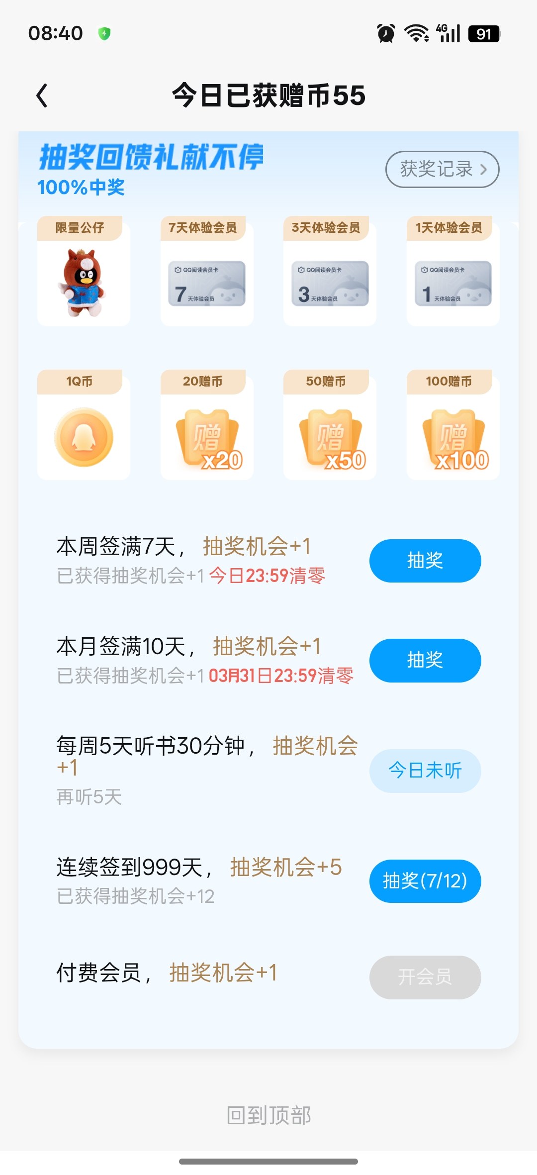 这抽奖几率太小了,七八次,一次也没中