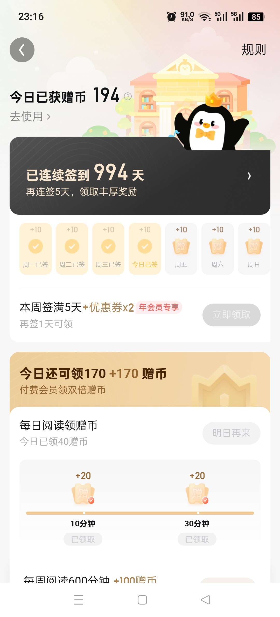 倒计时开始啦,好期待啊,签到999天完成后会有更精彩的活动