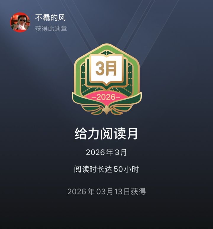 今厌的七天打卡勋章,和卡牌一起上线,虽然之前已经有打卡,但因为读者多,还是本来就没有?反正没排名,卡牌还是先把书删了(一直置顶🔝在书架的),点目录到扉页才能加书架得了一张,和大家一样怎么都刷不出来,还好会员有指定书籍抽卡,集齐就好。
