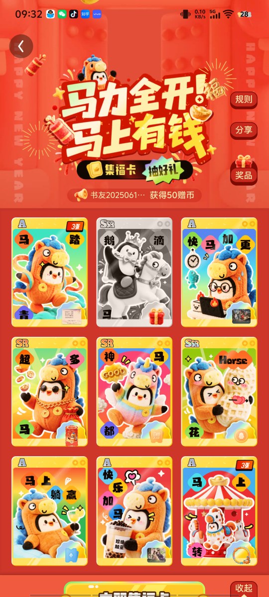 昨天差两张SSR,今天答题得到一张好事花生🥜,就差一张了,看来还是很有希望集齐的。