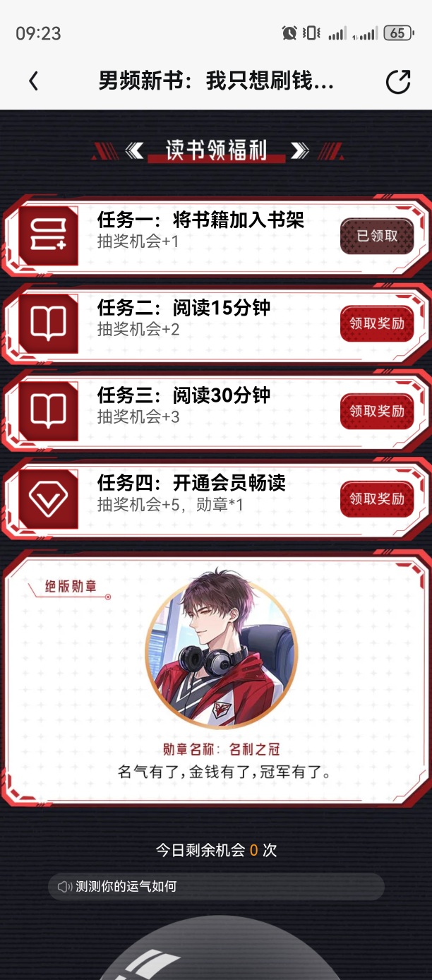 又有新的活动啦 阅读有奖 前三个是加书架和阅读哒 最后一个要充会员