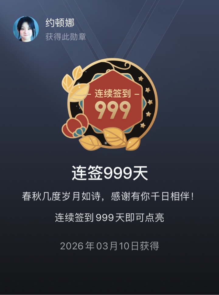999签到勋章拿到!撒花! 连签365天奖品错过,这还是第一次Q阅实物领取。期待(*^o^*)