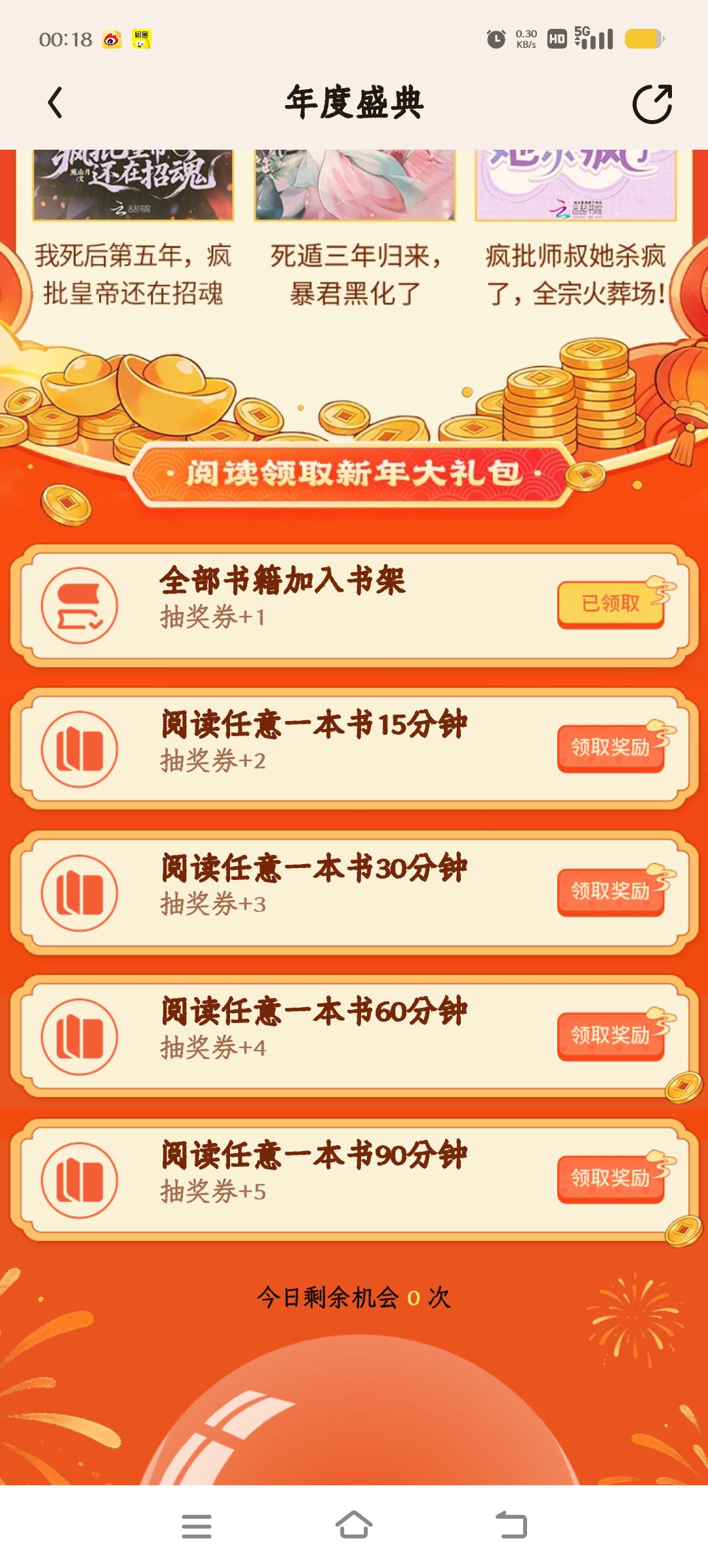 36本书加书架,阅读90分钟有15次抽奖机会