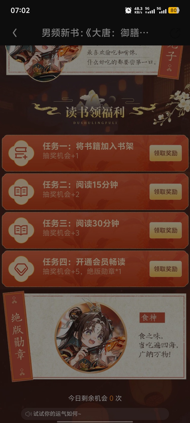阅读30分钟6次抽奖机会 勋章白嫖不了