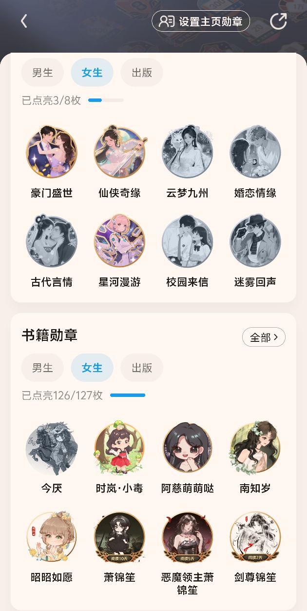 不同书籍勋章数据差别