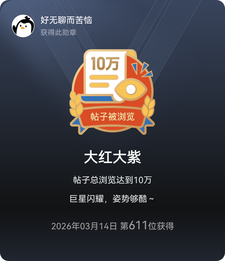 新勋章get!🎉现在简直比中奖还让人兴奋哈哈~ 这一刻超有成就感!!好奇大家都搞到了多少勋章,最想要哪个勋章? 还不错,第611位获得的,看来参与说书人计划每日发帖的人并没有多少啊!