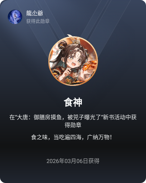 前段时间都没什么兴趣看书,终于又拿到勋章了!