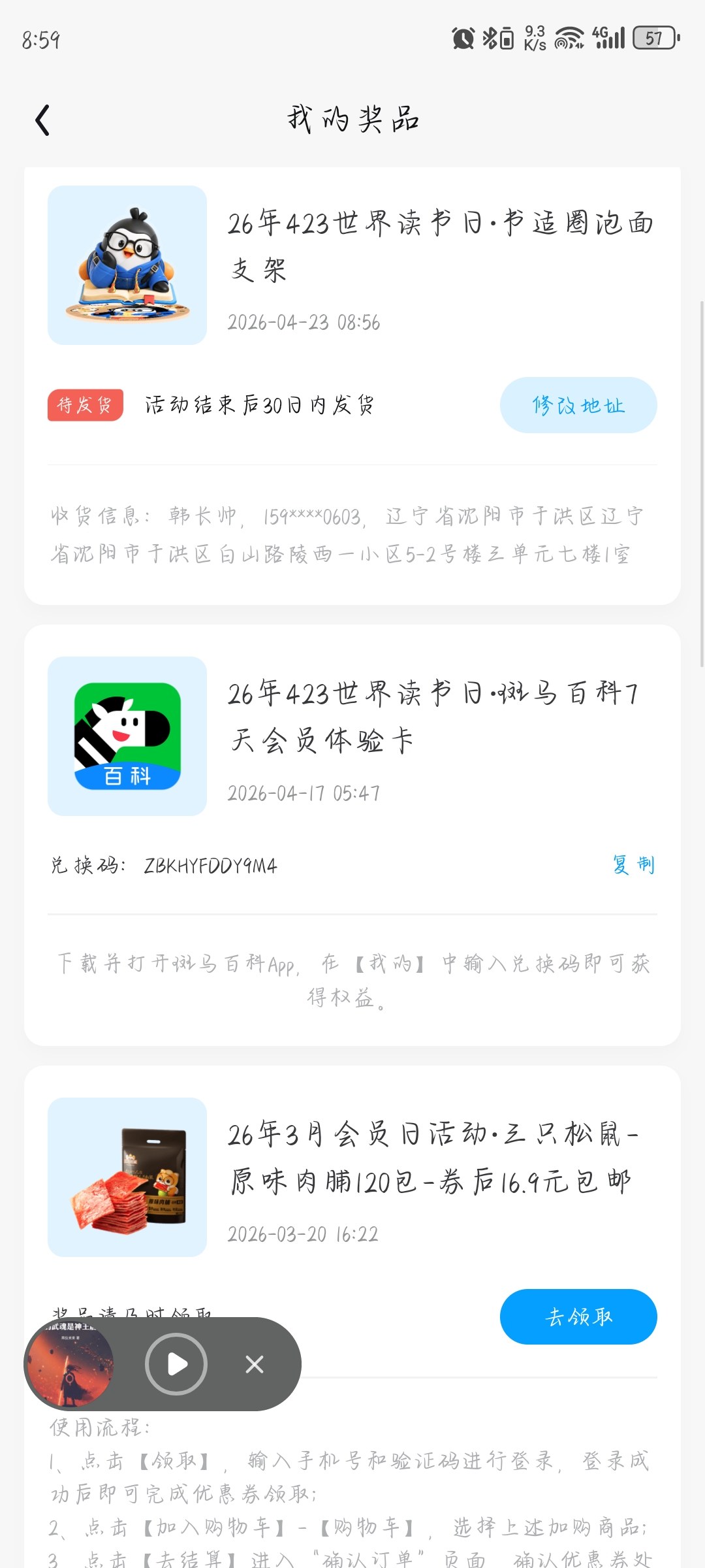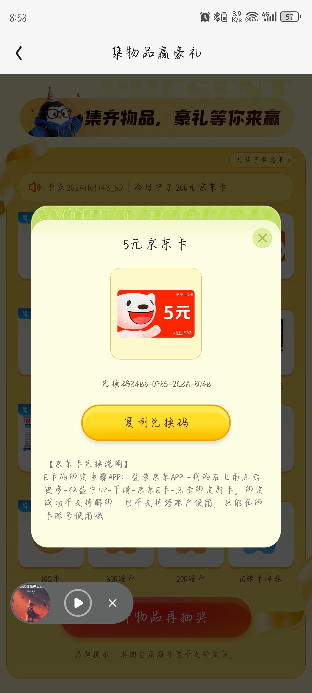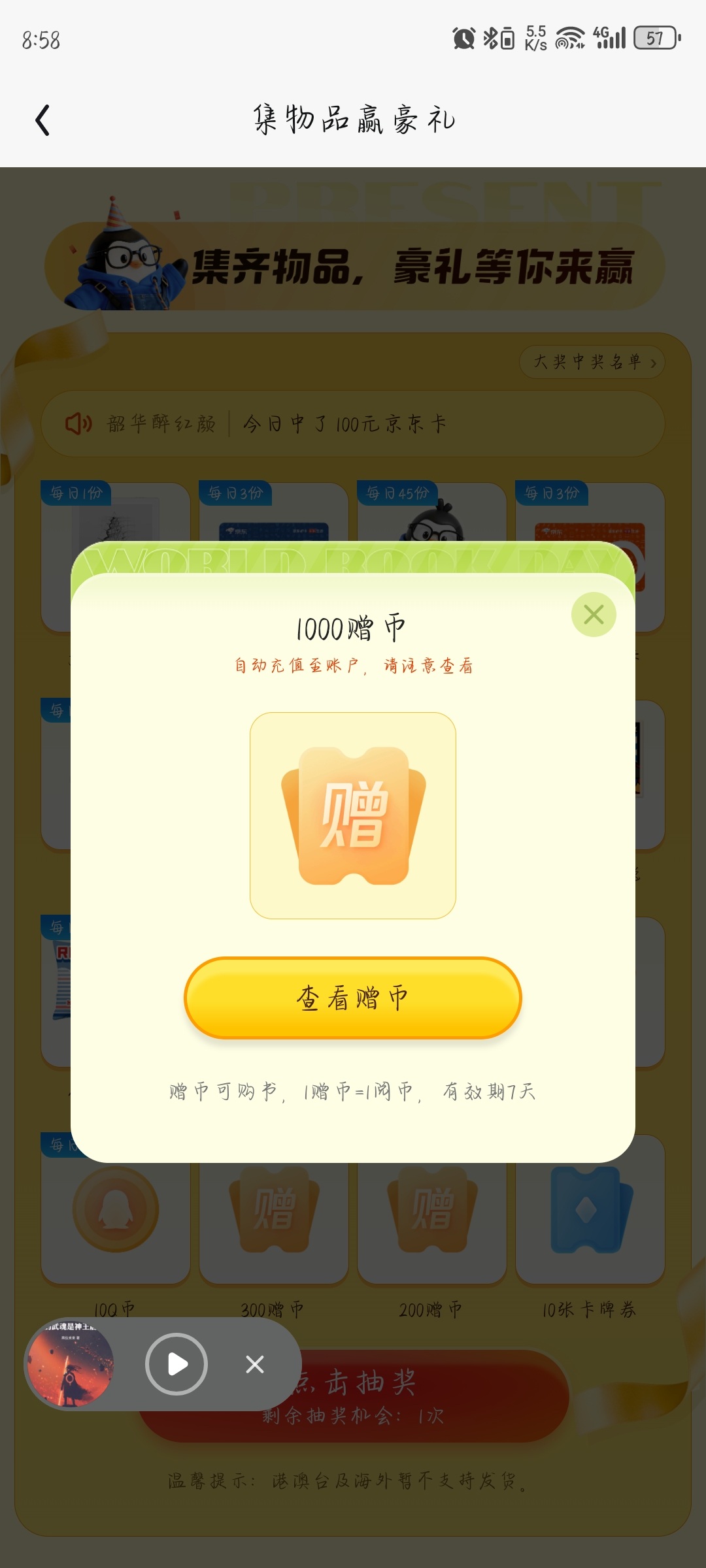 终于集齐了,三次抽奖就泡面支架和1000赠币有用