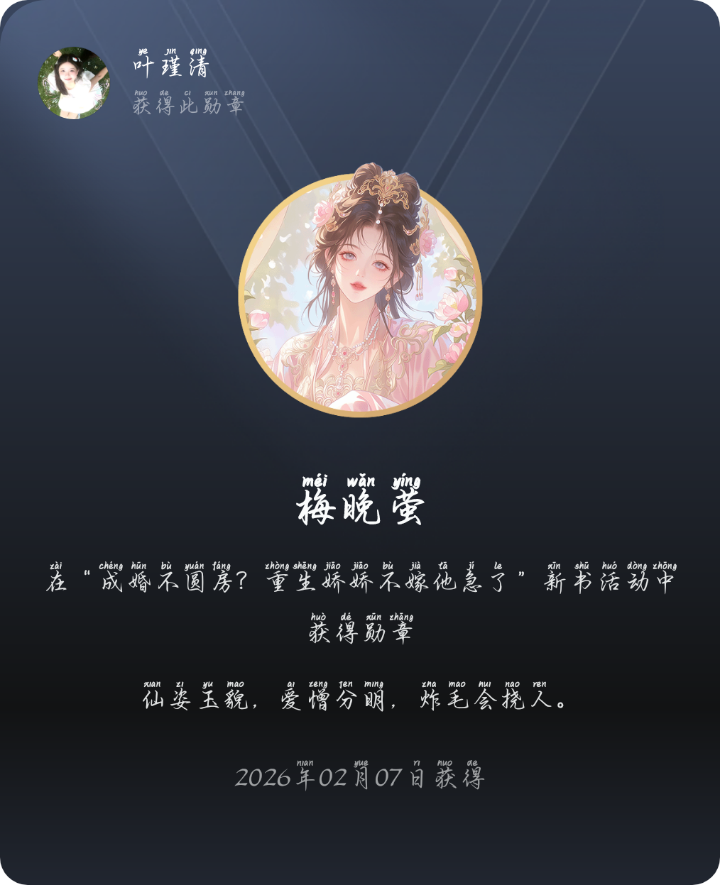 又一勋章到手! 真是个良心活动。刚看到,就已经能拿勋章了,啥都不用付出