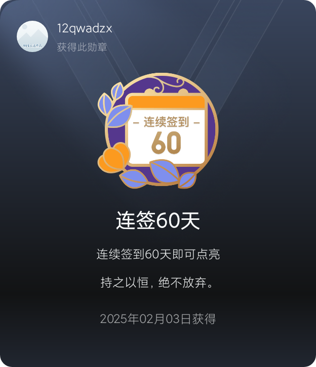 勋章:冰爆女皇陛下(打卡开始发力了)