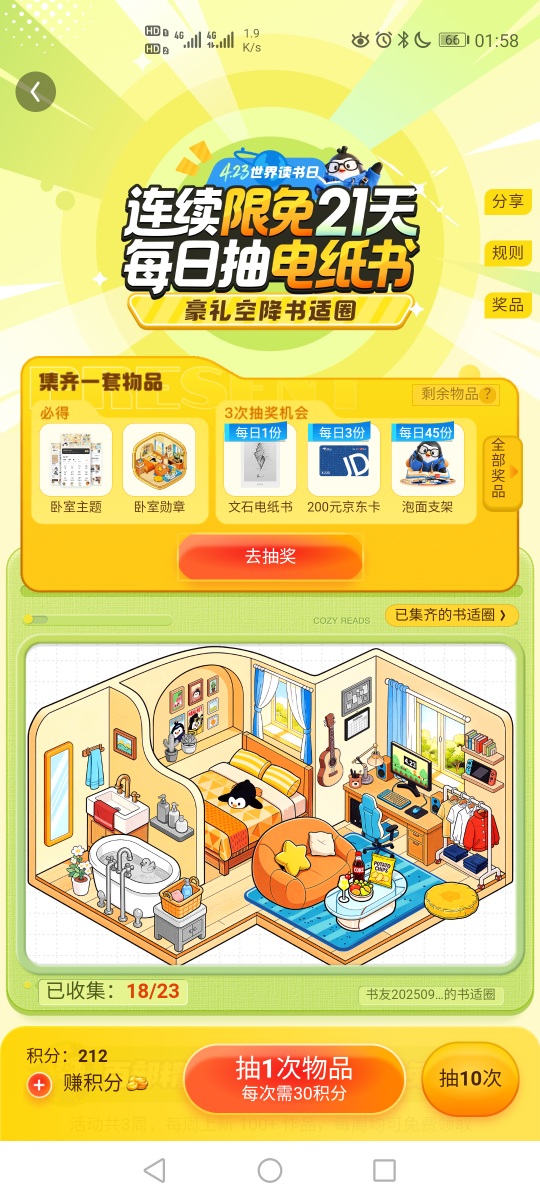 本打算领一个盲盒奖励睡觉啦,却看到有抽奖次数,奇怪呢,没集齐哪来的一次抽奖次数。 难道,是我没仔细看规则,还会随机掉落抽奖机会? 那可真是太棒了哇