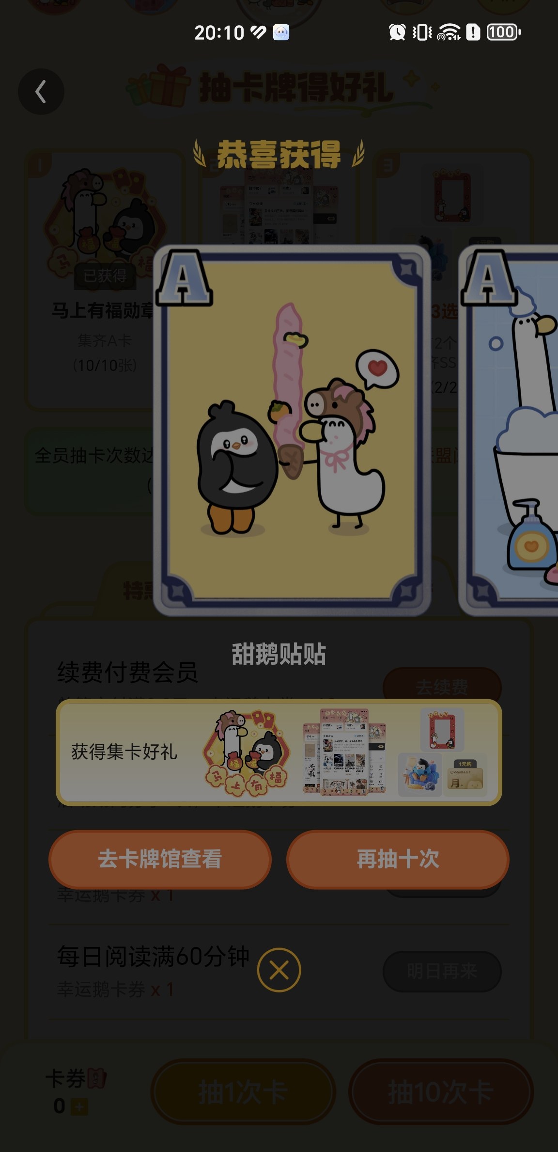 新年新气象!终于攒够了十连抽,一下子抽完,然后把剩下两张A卡抽出来了,对我来说相框立牌没什么好玩的带回来也是给小朋友玩的,中间那个已经被抢完了,所以开了一块充月卡了。新的一年祝大家:前程奔腾,生活跃跃,事业腾腾,健健康康,事事如意!🥰🥰